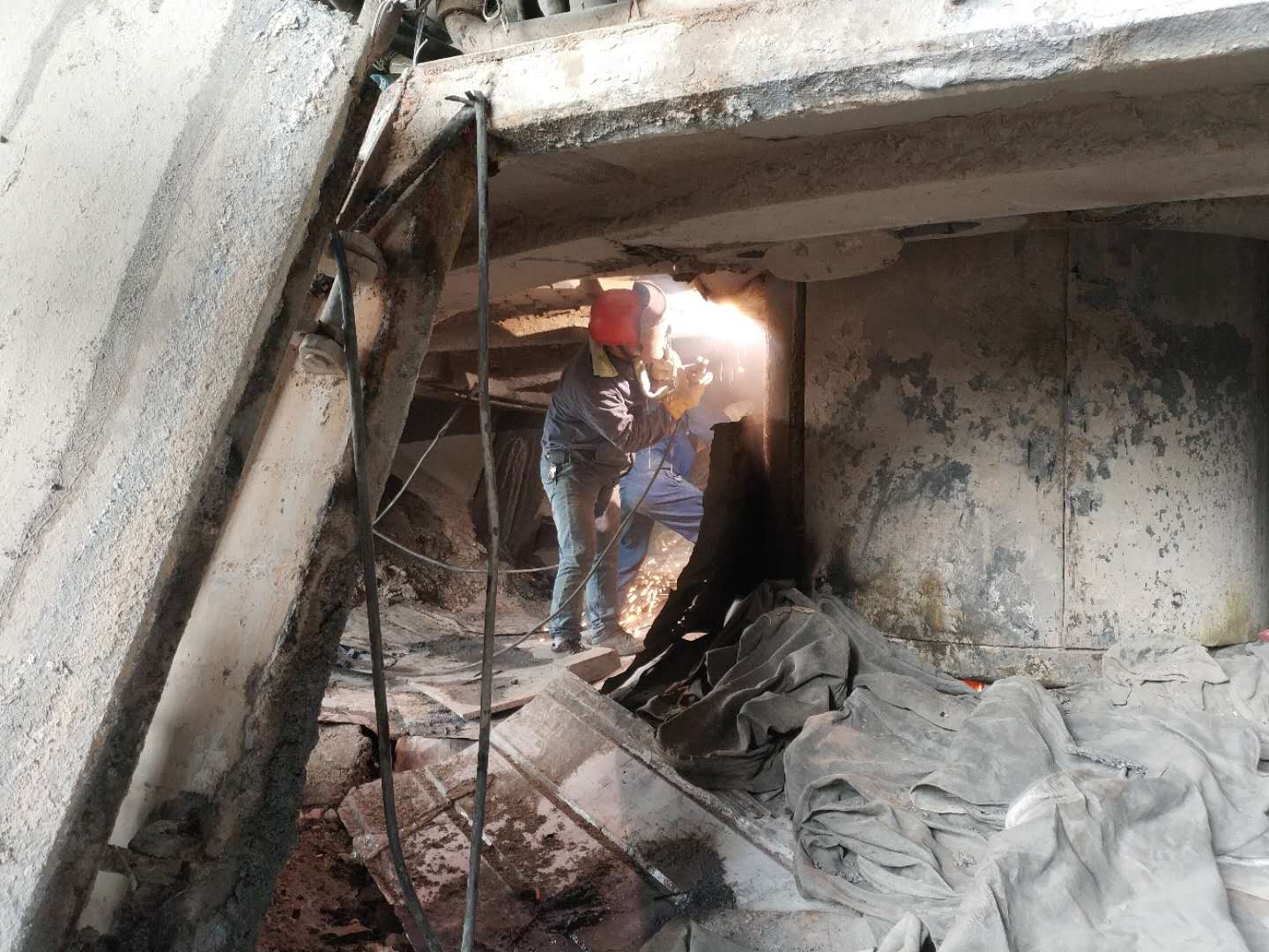 維修人員正頂著爐內(nèi)高溫,對電極本體進行檢查,并修復(fù)爐內(nèi)漏點。