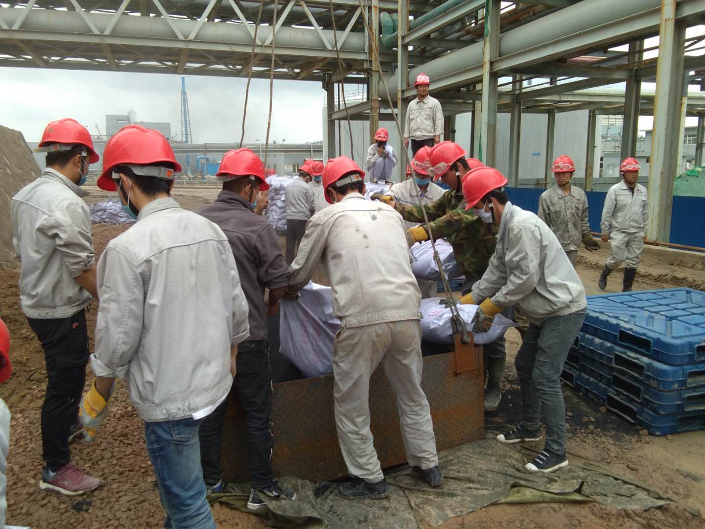 7月4日中午12時,連續(xù)幾天的陰雨天終于暫停,盡管天公不作美,烏云密布,隨時會下雨,但對奮戰(zhàn)在廣拓化工一線的檢修者們來說,雨住了就是最好的消息。因為決定化工系統(tǒng)能否按時開車的關鍵項目,本次計劃檢修的重頭戲--乙炔干燥更換吸附劑工作終于能開始了!摆s快安排吃飯,抽調(diào)一切力量,13時準時到場協(xié)助檢修,我們要與天氣賽跑,趕在下雨前完成乙炔干燥吸附劑的填充工作!彪S著化工公司總經(jīng)理賈存富的一聲令下,各裝置、科室應聲而動,積極組織人員參與到檢修工作中,一場與天氣賽跑的搶修大戲開始了……