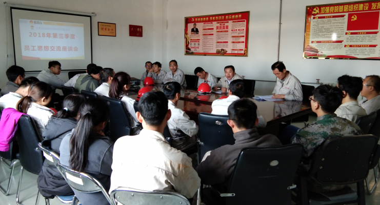 為了充分了解員工的思想動(dòng)態(tài),征詢(xún)廣大職工意見(jiàn)和建議,幫助員工解決工作和生活中的實(shí)際困難,加強(qiáng)員工隊(duì)伍建設(shè),體現(xiàn)公司以人為本的管理理念,促進(jìn)企業(yè)更加健康、和諧發(fā)展,寧夏興昊永勝鹽業(yè)科技有限公司于10月10日組織召開(kāi)了2018年第三季度員工思想交流座談會(huì)。會(huì)議由鹽業(yè)公司總經(jīng)理尚繼榮同志主持,鹽業(yè)公司黨支部副書(shū)記王志杰、綜合科科長(zhǎng)張偉及職工代表列席參加會(huì)議。