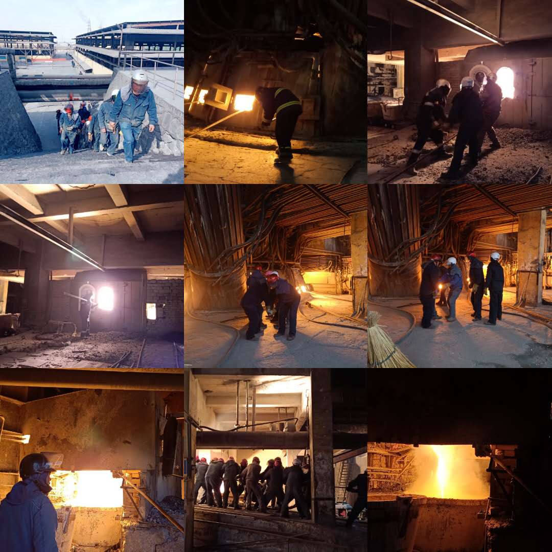 對著熊熊爐火,冶煉工人知道,爐腔內(nèi)變化無盡的是冶煉工人期盼的碩果,每出一爐電石都像是打一場硬仗,現(xiàn)在的時節(jié)冶煉工人的衣服都是濕了又干,干了又濕。防燙服就成了冶煉工人的護身符,厚厚的穿在身上,當(dāng)脫下衣服的時候,發(fā)出一股餿餿的味道。每一次大修開爐都是一次新的挑戰(zhàn),堅守崗位,潛心觀察,呼喊奔忙,團結(jié)協(xié)作,沖鋒陷陣,奮戰(zhàn)前沿……。每天24小時火苗“呼呼呼……”地?fù)u曳,煙霧混合著粉塵穿梭彌漫,熔硫滾滾,蒸汽翻卷,設(shè)備轟鳴,爐花飛舞。烈焰熠熠金光閃閃,熔流像一道道金色的瀑布,如一條條通紅透亮的巨龍,從爐腔內(nèi)豪放呼嘯著噴涌而出,順溜槽咆哮著渲泄而下。朵朵金燦燦的銅花在空中舞蹈,燁燁生輝迎胸?fù)涿?冶煉工人的臉掛上金邊猶如一團團盛開的花,煜煜奪目流光溢彩。冶煉工的心情與急瀉的紅瀑布一起洶涌,熱血隨飛躍的熔龍一起翻騰,心花和歡呼的銅花一起飛舞,是呵,爐膛內(nèi)煉出了勞動者的贊歌,爐門外涌出了金色的碩果。
