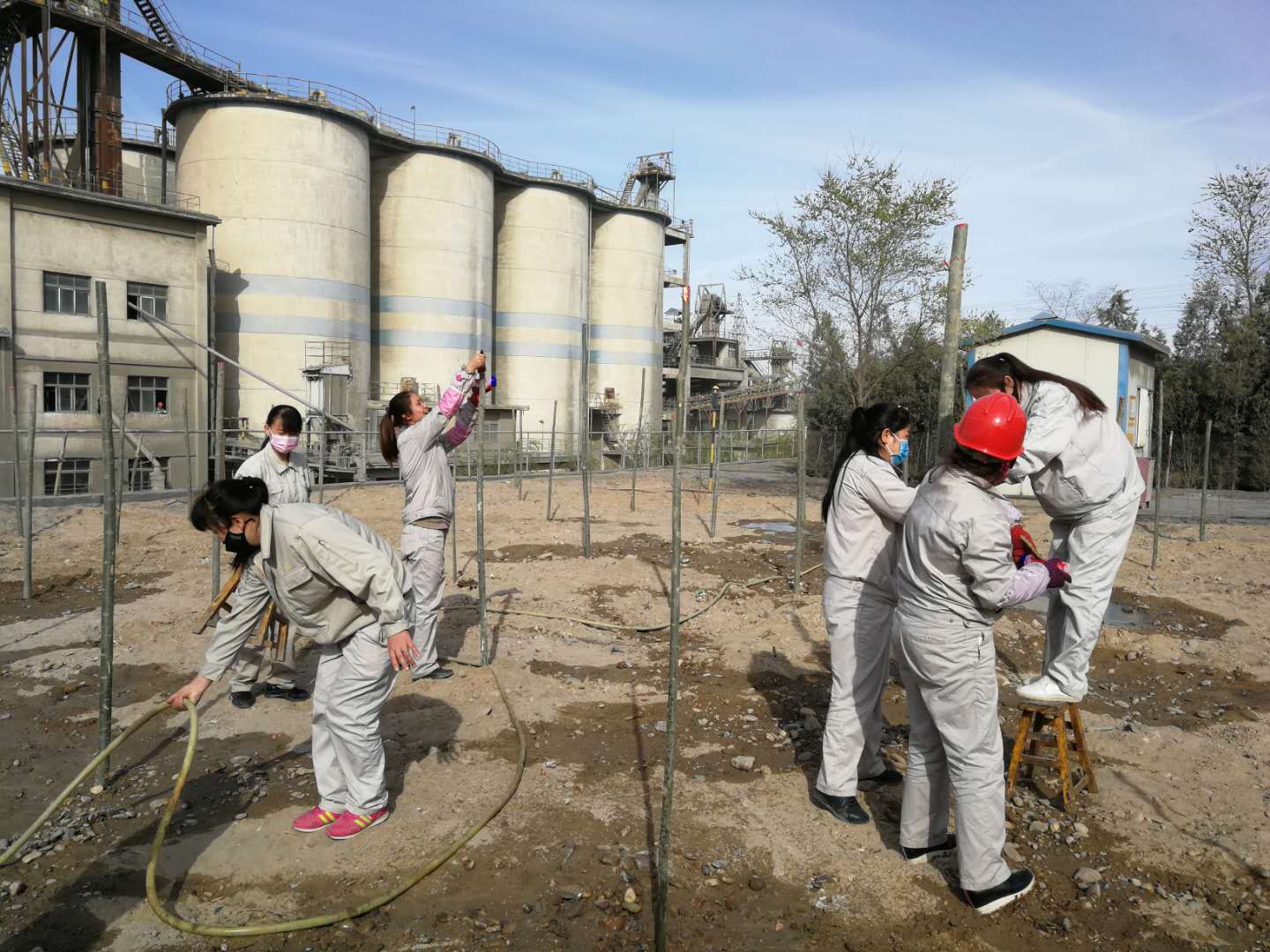 4月10日和11日,資源再生公司組織所有日勤人員栽種樹木。先后在東大路西側(cè),4#電石爐西側(cè),職工回民餐廳門口及成品裝置東邊等等地方栽種樹木上千棵。大家齊心協(xié)力,扶樹的、填土的,每個人都在努力的加快進(jìn)度,頭上冒出了汗珠,渾身酸痛,可大家仍然堅(jiān)持著,短短兩天時間就將所有計(jì)劃的樹木全部栽種完畢。