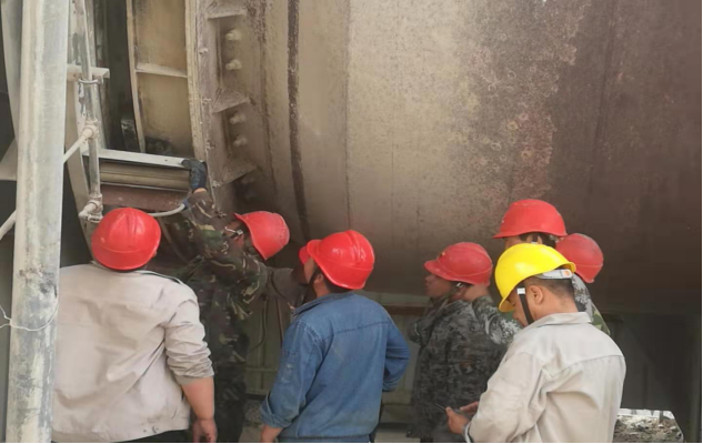 在生料裝置高精選粉機現(xiàn)場,檢修現(xiàn)場空間狹小,操作難度大,人員搭配不當、責任心不強,上去湊湊合合就會等于白干,因此選人用人需要精益求精,必須要以業(yè)務(wù)精干和責任心強的上去才行,楊新恒與其他三名同事上去,整整干了四個多小時,頂著高溫,忍者口干舌燥,硬是將10余處問題逐一解決。
