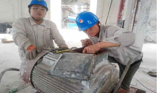 酷暑難當(dāng)!我還只是走走停停就已經(jīng)大汗淋漓,更何況我們可愛的工友們。進入到電儀裝置現(xiàn)場,這些工友們,真的是恨不得將一個人分成兩個人用,他們是公司安全用電及技改的重要力量,這幾天,他們冒著酷暑,頂著作業(yè)銜接與催促,積極推進檢修進度,他們完成修復(fù)了1102皮帶拉繩開關(guān)及跑偏開關(guān)的檢修、完成了熟料庫頂2825M離心風(fēng)機及2622M斜拉鏈機電機及接線盒的檢修、完成了更換頭排風(fēng)機變頻柜分機以及二次配料底2111M,2031M,2025M斜槽風(fēng)機電機及接線盒的檢修。