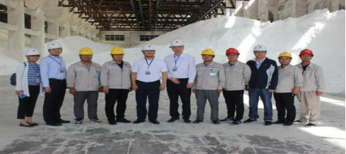 白鴻一行先后到興昊永勝鹽業(yè)公司鹽庫、鹽銷裝置、熱力裝置、企業(yè)文化展廳等地進行實地調研,并在鹽庫進行了合影留念。