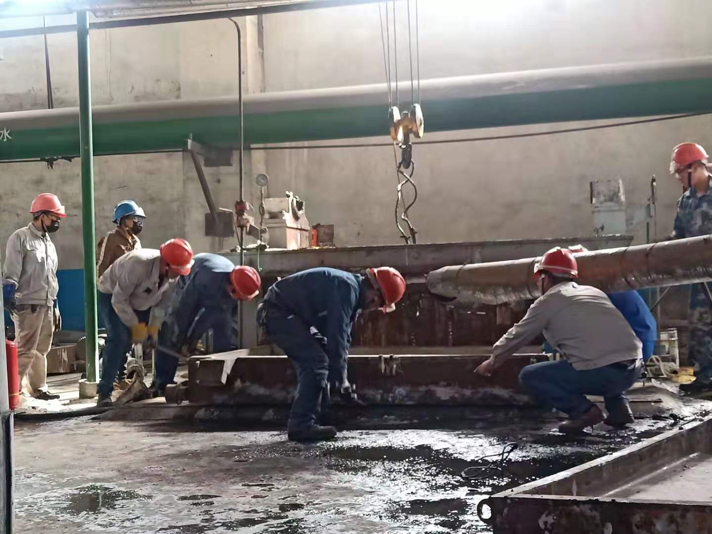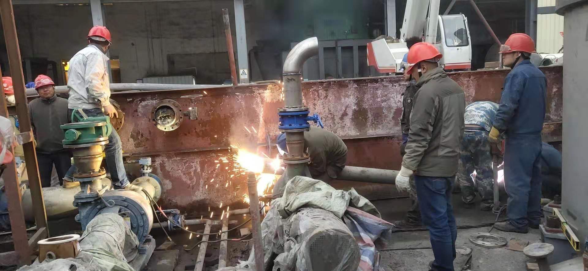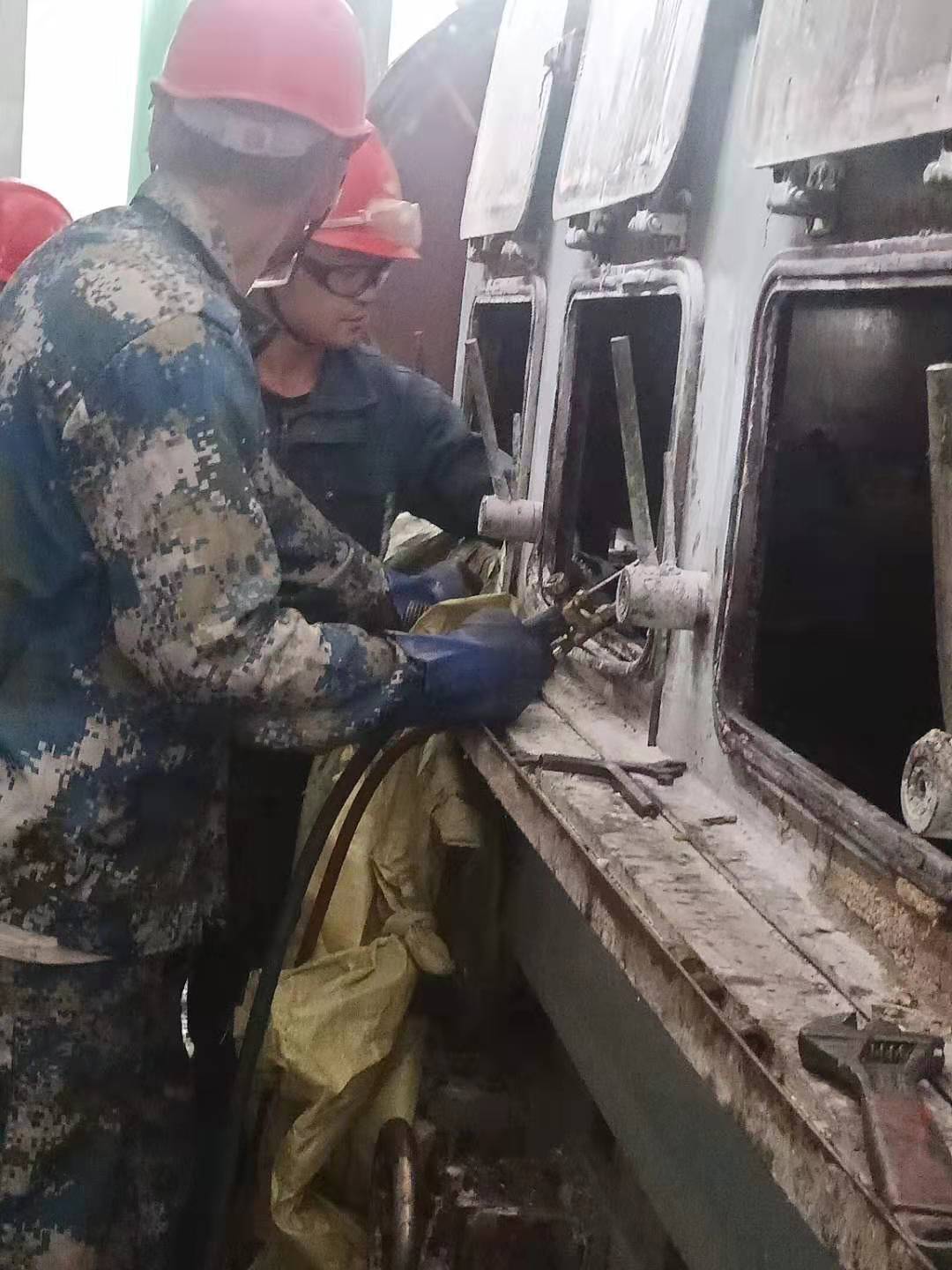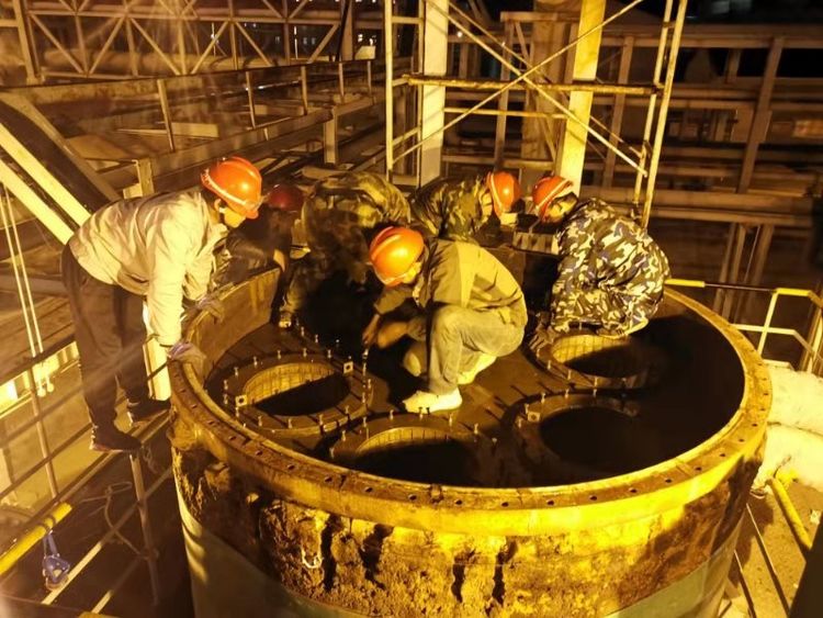 清晨,我看到兢兢業(yè)業(yè)的管理人員和朝氣蓬勃的年輕同事,他們“武裝上陣”頭戴安全帽,手帶防護(hù)手套。拿著各類方案和各類工具,快速地奔向各個(gè)檢修點(diǎn)。我看到他們忙碌的身影和為了完成檢修任務(wù)而焦灼的神情,大大小小的設(shè)備里三人一伙,兩人一組,有更換閥門的,有更換閥欄的,每個(gè)人手上、身上都沾滿了油污,他們沒(méi)有抱怨,只是默默地付出著。