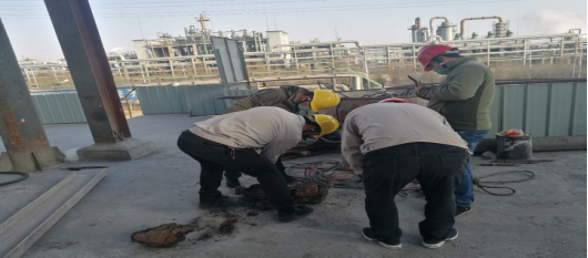 公司總經(jīng)理吳紅衛(wèi)、副總經(jīng)理梁軍和副總經(jīng)理曹愛(ài)新分頭行動(dòng)一直守在全體參戰(zhàn)管理人員和工人的身旁,叮囑安全。為挖補(bǔ)的順利進(jìn)行和下一步滿(mǎn)負(fù)荷運(yùn)行承擔(dān)著繁重的檢修規(guī)劃。