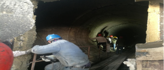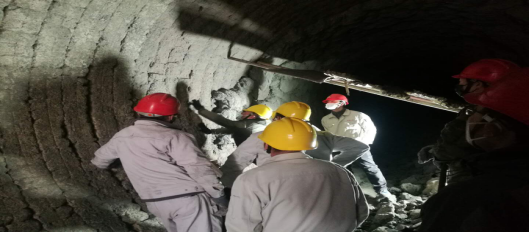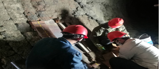 窯磚緊固。加塞,在轟鳴的風(fēng)鎬聲中,夾雜著交替起落的敲擊聲,工友們,正頂著滿(mǎn)面的塵灰完成作業(yè)。