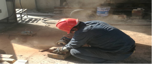 2月19日早上8點(diǎn)動(dòng)工挖補(bǔ),到當(dāng)日下午19:18回轉(zhuǎn)窯點(diǎn)火升溫,全體管理人員、成品裝置維修工人以及回轉(zhuǎn)窯系統(tǒng)全體在崗工人,在進(jìn)入檢修作業(yè)狀態(tài)的那一刻起,一會(huì)兒走入窯內(nèi),熱氣撲面,嚴(yán)肅、緊張的計(jì)算和規(guī)劃,一會(huì)兒生產(chǎn)科科長(zhǎng)張振忠、成品裝置裝置長(zhǎng)帶頭掄動(dòng)著鐵錘,工友們或蹲著、或扶著支架,每個(gè)人都在揮汗如雨的忙碌著,淺綠色、白色工服上斑斑點(diǎn)點(diǎn)不一的顏色見(jiàn)證著他們流下的每一滴汗水。