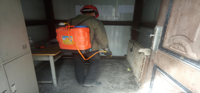 在崗位辦公室消毒。