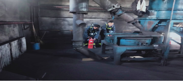 按照預案,事故發(fā)生后,崗位人員或現(xiàn)場作業(yè)人員發(fā)現(xiàn)火情并有人員受傷后,立即采取應急措施,用對講機向中控室和當班調度報告火情,當班調度接到報警后,立即啟動應急預案,通過對講機通知中控操作員停止輸煤系統(tǒng),回轉窯止料,生產系統(tǒng)緊急停車和電器人員對煤粉制備系統(tǒng)斷電,滅火組隊員趕赴現(xiàn)場,對現(xiàn)場情況進行檢查確認,通報主管生產副總經理。同時,迅速成立以總經理為首的應急救援小組,下設消防搶險滅火組、安全警戒組、醫(yī)療救援組、通訊監(jiān)控組、設備搶修組、環(huán)境監(jiān)測組、后勤保障組、生產保障組,各小組各司其職,從發(fā)現(xiàn)火情,到確定火災類型并針對性的制定滅火方案,組織人員快速施救,最終確定火源熄滅,解除預警,整個過程一氣呵成,處理得當,各項演練任務圓滿完成。