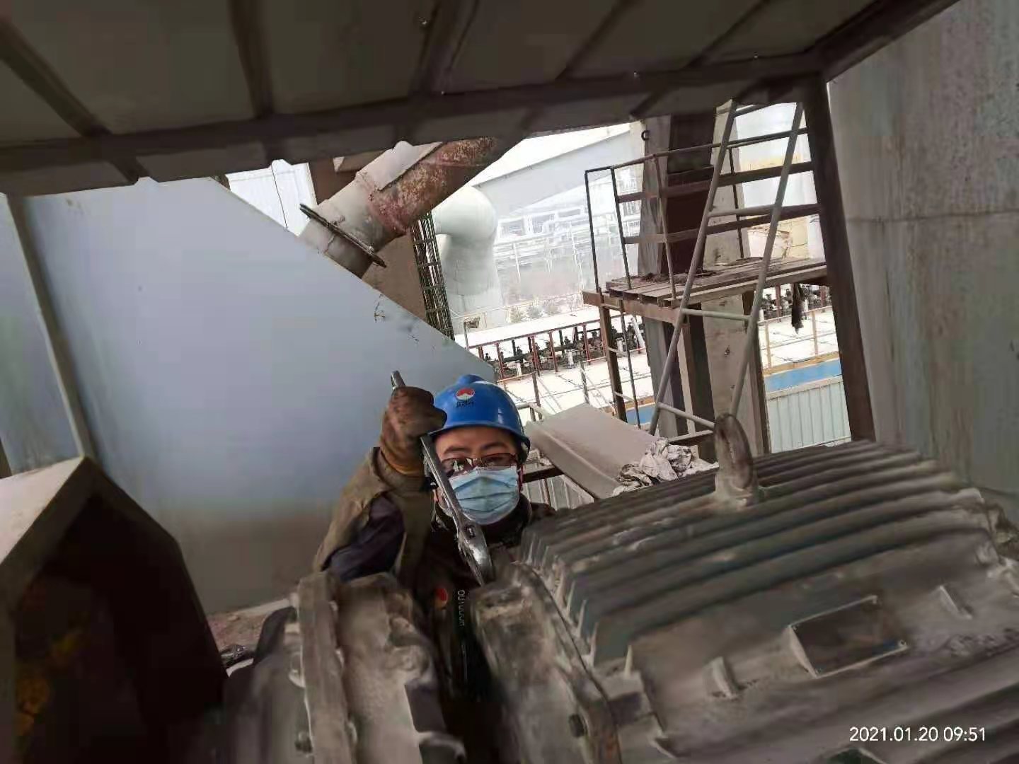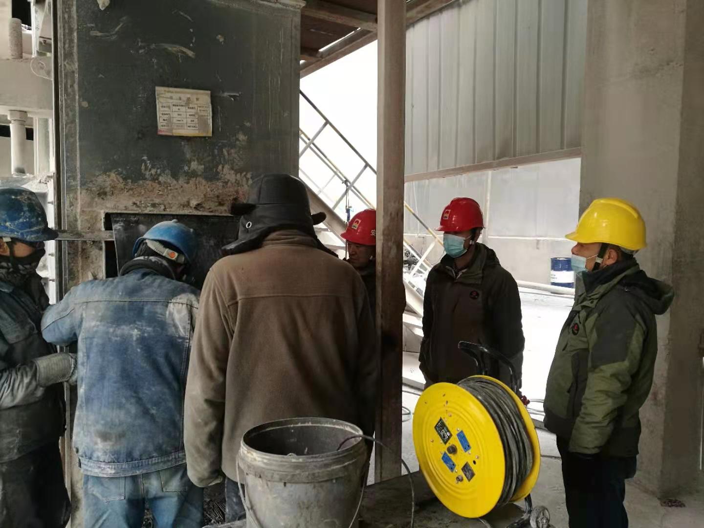 檢修作業(yè)全程跟蹤,一天一夜檢修下來,有睡在辦公室沒回家的,也有吃飯就在作業(yè)現(xiàn)場……比比皆是?偨(jīng)理吳紅衛(wèi)更是如此,一個作業(yè)一個作業(yè)現(xiàn)場轉上轉下,從2026提升機作業(yè)點到回轉窯主傳減速機,再到篦冷機、煤磨、烘干破、預熱器、2301、2323、2401提升機以及高溫風機、回轉窯窯內(nèi)及燃燒器檢修現(xiàn)場,指導,建議,一直值守在現(xiàn)場,忙著跟工人們同時收工,一整晚都未歸宿就寢室。工人們,裝置長擔心他的身體,時常提醒讓他回去休息一下,喝口水,而他放心、安慰大家說,“我和大家一樣的心情,早完工,產(chǎn)量就能早生產(chǎn)一點,我們后續(xù)生產(chǎn)就能輕松一點,大家加油”。一直以來,他和這個班子成員、工人們一起頂著嚴寒,一直堅守在現(xiàn)場安全履職和協(xié)調(diào)把控檢修進度,不厭其煩的一次次的詳細交底,直到一項一項設備檢修更換完畢。
