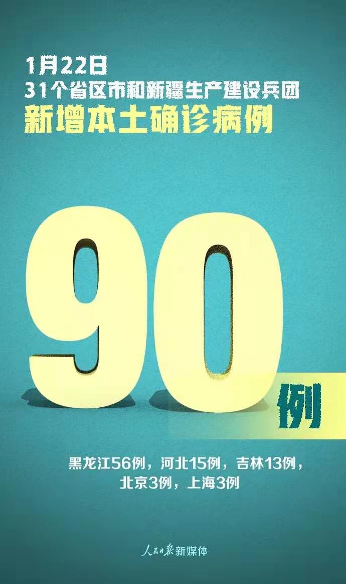 1月22日0—24時,31個省(自治區(qū)、直轄市)和新疆生產(chǎn)建設(shè)兵團報告新增確診病例107例,其中境外輸入病例17例(上海8例,山西4例,江蘇2例,湖南1例,廣東1例,四川1例),本土病例90例(黑龍江56例,河北15例,吉林13例,北京3例,上海3例);無新增死亡病例;新增疑似病例2例,其中境外輸入病例1例(在上海),本土病例1例(在上海)。