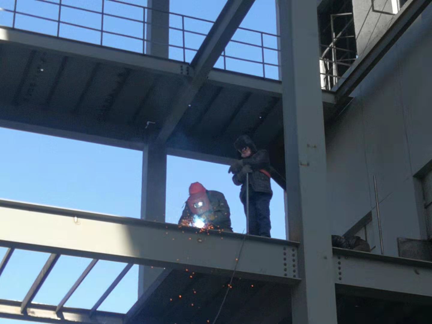 清晨的天,陰沉沉的。雖然跟前幾天比起來(lái)溫度有所回升,但呼呼的北風(fēng)還是讓人感覺(jué)寒冷。走進(jìn)技改現(xiàn)場(chǎng),龐大的吊車(chē)正在吊裝作業(yè)。高高的原料輸送斜廊上幾個(gè)身影系著安全帶等待著彩板的到來(lái)。吊車(chē)旁邊的指揮者,穿著厚厚的棉襖,拿著對(duì)講機(jī),高高的仰著頭在觀察吊物情況,確保吊裝過(guò)程的安全。我抬頭仰望,數(shù)十米高的平臺(tái)上,幾個(gè)身影若隱若現(xiàn),隱約能看到他們的安全帽在鋼結(jié)構(gòu)后面來(lái)回躍動(dòng)。