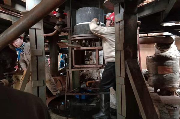 燈頭是蒸汽爐最核心的部件,它就如同蒸汽爐的“心臟”,保證著蒸汽爐的安全平穩(wěn)運(yùn)行。由于燈頭是石英材質(zhì),不能有任何碰撞。有著二十年檢修工作經(jīng)驗(yàn)沈培銀老師傅,像一名“將軍”一樣,指揮著大家拆燈頭,滿身的油污,像軍功章一樣掛在他的胸前。只見(jiàn)他拿來(lái)三根全絲螺桿,均勻地固定在燈頭支座上,隨著三只螺母的松動(dòng),燈頭就開(kāi)始慢慢地向下移動(dòng),為了保證燈頭的平穩(wěn)下落,三個(gè)人必須同時(shí)松動(dòng)螺母,這需要高度默契地配合。 沈培銀老師傅不緊不慢地松動(dòng)著螺母,并時(shí)刻提醒著其他兩個(gè)人的進(jìn)度。汗水早已濕透了三人的衣服,裹挾著污漬的汗水不停地順著他們的臉頰滴落。愛(ài)開(kāi)玩笑的同事,不失時(shí)機(jī)地說(shuō)個(gè)笑話,逗得大家哈哈大笑,身上的疲憊感頓時(shí)消減幾分。