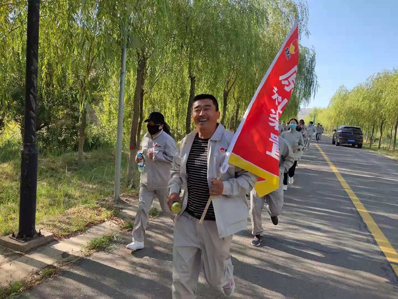 根據(jù)公司安全及疫情防控工作要求,讓參賽18組隊員以事先抽簽排好的順序分批次,間隔10鐘為規(guī)則,從大禹文化園為起點直至集團公司籃球場路途長達(dá)12.6公里的徒步越野。