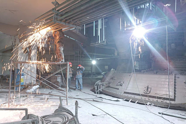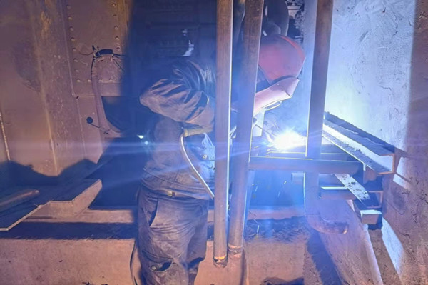 在檢修現(xiàn)場(chǎng),我們的檢修工人身系安全帶,手拿焊鉗,蹲在狹小的空間,焊接水管,耗時(shí)耗力,唯有飛濺如麥穗的焊花展現(xiàn)著他們的顏色,魚(yú)骨似的焊縫是他們驕傲的成果。同時(shí)在檢修過(guò)程中也伴隨著灰塵飛揚(yáng)和各種安全隱患,但在我們檢修工人的臉上沒(méi)有看見(jiàn)沮喪的表情,看到的是檢修工人汗水浸透的后背,沒(méi)有休憩,只有投入;看到的是檢修工人一張張布滿灰塵的臉頰,沒(méi)有怨言,只有投入。在這里你可以看到那一個(gè)個(gè)無(wú)比堅(jiān)毅的目光,感受到他們內(nèi)心滿滿的自信和他們愛(ài)崗敬業(yè)、無(wú)私奉獻(xiàn)、不畏艱辛的精神;他們攜手共進(jìn)、分工合理、工作有序,只為創(chuàng)造安全的檢修環(huán)境;他們?yōu)樘崆巴瓿蓹z修任務(wù)加班到深夜,工作時(shí)間長(zhǎng)、工作量大,不辭辛勞,沒(méi)有任何怨言,充分展現(xiàn)了“團(tuán)結(jié)、拼搏”的企業(yè)精神。