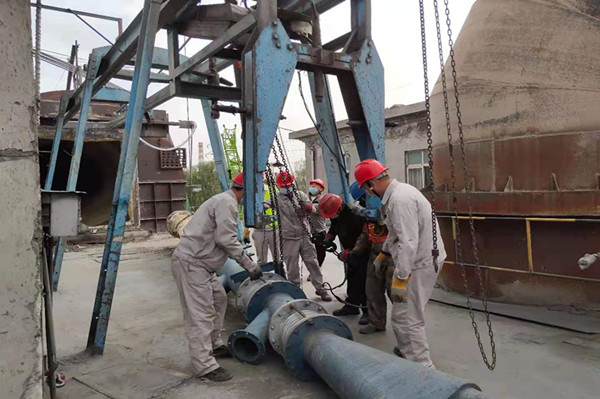 團(tuán)隊(duì)是什么,是為了實(shí)現(xiàn)一個(gè)共同的目標(biāo)而集合起來(lái)的人。 任何一個(gè)人的力量都是渺小的,只有融入團(tuán)隊(duì),只有與團(tuán)隊(duì)一起奮斗,勁往一處使,你才能實(shí)現(xiàn)個(gè)人價(jià)值的最大化,你才能成就自己的卓越!伴隨副總經(jīng)理一聲令下,所有人員喊著豪邁的口號(hào),配合吊機(jī)的力臂推動(dòng)著奇重?zé)o比的噴煤管一點(diǎn)一點(diǎn)的前行。又一會(huì)功夫?qū)⒒剞D(zhuǎn)窯門(mén)緩緩調(diào)至檢修現(xiàn)場(chǎng)安全的位置。