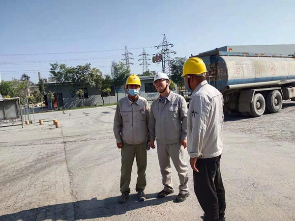 公司安全總監(jiān)鄒永清、副總經(jīng)理馬澤陪同專家組深入生產(chǎn)現(xiàn)場(chǎng),對(duì)工藝流程、操作人員的勞動(dòng)防護(hù)用品、設(shè)備運(yùn)行情況向?qū)<医M逐一進(jìn)行講解。