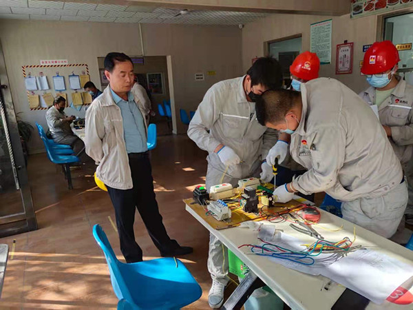 比武以各運(yùn)行裝置為單位,采取“理論答題+實(shí)際操作”的模式,理論答題開(kāi)始后,規(guī)范的考試流程讓現(xiàn)場(chǎng)氛圍瞬間嚴(yán)肅起來(lái),各參賽選手認(rèn)真答題,反復(fù)核對(duì),直至考試結(jié)束。實(shí)操現(xiàn)場(chǎng),焊機(jī)轟鳴,焊花閃爍,呈現(xiàn)出緊張激烈而又規(guī)范有序的競(jìng)賽氛圍。選手們頭戴焊帽,手持焊槍,埋頭點(diǎn)焊,一會(huì)兒調(diào)整焊接角度,一會(huì)兒改變焊接方向,敲敲打打,力爭(zhēng)在規(guī)定時(shí)間內(nèi)高標(biāo)準(zhǔn)完成整個(gè)焊接工作。