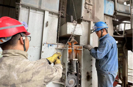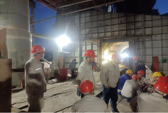 從9月14日00時(shí)00分到9月30日8時(shí)26分回轉(zhuǎn)窯點(diǎn)火升溫,再到10月1日00時(shí)40分回轉(zhuǎn)窯投料,資源循環(huán)公司圍繞回轉(zhuǎn)窯內(nèi)耐火材料更換施工、更換液壓擋輪、烘干破工藝管道、動(dòng)態(tài)選粉機(jī)內(nèi)耐磨涂層修復(fù),更換出口管道及膨脹節(jié),補(bǔ)焊殼體內(nèi)襯、篦冷機(jī)側(cè)墻、煙室斜坡、分解爐錐部、煙室縮口、三次風(fēng)管內(nèi)部、窯口澆注料的澆筑、1909提升機(jī)實(shí)施大修,更換整套板鏈、部分料斗、尾輪、全廠11臺(tái)變壓器除塵及試驗(yàn)、窯尾在線監(jiān)測(cè)系統(tǒng)安裝、調(diào)試等16個(gè)重點(diǎn)大修項(xiàng)目,歷時(shí)16天,在全體參檢工友們不辭辛苦、夜以繼日的拼搏奮斗下,按時(shí)間節(jié)點(diǎn)安全有序圓滿完成59項(xiàng)檢修項(xiàng)目,其中小修18項(xiàng)、中修25項(xiàng)、大修16項(xiàng),為圓滿實(shí)現(xiàn)“降本降耗,開(kāi)源節(jié)支”活動(dòng)奠定了堅(jiān)實(shí)的運(yùn)行基礎(chǔ)。