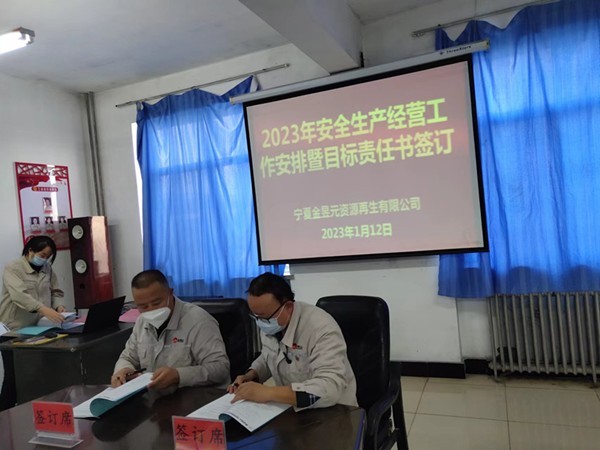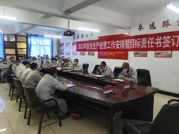 虎歲揚威興駿業(yè) 兔毫著彩繪宏圖。2023年1月12日14:00分,資源再生公司召開了2022年生產(chǎn)經(jīng)營工作總結會、2023年度安全生產(chǎn)經(jīng)營工作安排暨目標責任書簽訂。會議由公司副總經(jīng)理雷銳同志主持,公司年薪團隊、職能科室長及專業(yè)負責人、裝置管理團隊和職工代表參加。