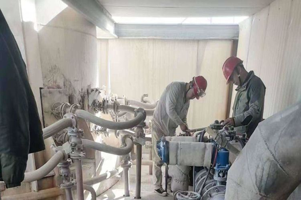動(dòng)力裝置檢修人員可謂是上得橋架,下得消防井,游走于水、陸、空之間。全力以赴更換2#白灰窯環(huán)管快切閥門(mén),一絲不茍移換凈化配電室配電柜,已經(jīng)更換及清洗部分填料工作和修復(fù)的冷卻塔集水盤(pán)就可以展現(xiàn)他們水、陸、空作業(yè)的能力。還有狹小空間里作業(yè)的人員,切割、焊接毫無(wú)妨礙。原料裝置也不遜色,更換布袋這份工作都已經(jīng)如囊中取物,不管是除塵器還是窯前倉(cāng),都已經(jīng)被他們輕輕松松完成。力氣是他們特有的魅力,細(xì)心是他們工作的態(tài)度,用肥皂水查找并消除噴槍層漏點(diǎn),用抹布擦凈每臺(tái)設(shè)備。