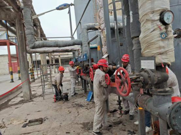 各裝置克服檢修點多面廣、檢修環(huán)境差、人員少等困難,精心組織、合理安排,使檢修工作有序推進,裝置各級管理人員以身作則與現(xiàn)場檢修人員共同奮戰(zhàn)在現(xiàn)場,無論是烈日的暴曬,還是黃沙的肆虐,都不能阻擋他們與維修工共檢修的決心。他們與現(xiàn)場檢修工奮戰(zhàn)在檢修現(xiàn)場的每一個角落,清油污、開人孔、拆法蘭、換閥門, 他們的身影無處不在,這種身先士卒的精神,輻射帶動起全體檢修人員的干勁。在每個檢修現(xiàn)場,職工們都精神抖擻,全心全力投入檢修工作,為了趕進度,他們自覺放棄午休時間,在檢修現(xiàn)場簡單吃點飯后,又繼續(xù)投入檢修中。夜幕降臨,廠區(qū)內(nèi)燈火輝煌,參與檢修的人員發(fā)揚不怕苦、不怕累,連續(xù)作戰(zhàn)的精神戰(zhàn)斗在檢修現(xiàn)場。