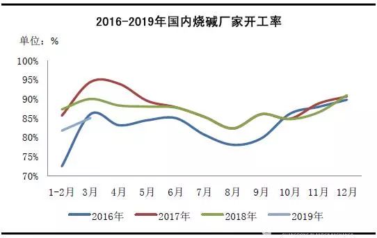 圖2 2016-2019年國內燒堿廠家開工率