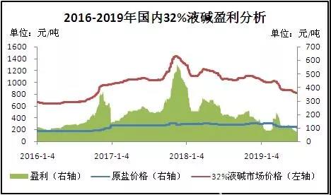 從表1可以看出,今年下半年我國氧化鋁行業(yè)計劃新增和恢復生產(chǎn)的產(chǎn)能高達985萬噸,占2018年氧化鋁行業(yè)產(chǎn)能(8410萬噸)的11.7%。假若按期投產(chǎn),預計有望提升燒堿需求三到四個百分比。然而與此同時,氧化鋁行業(yè)多個利空因素并存。第一、在產(chǎn)能置換政策下,氧化鋁企業(yè)能否順利投產(chǎn)有待觀察。第二,由于國內鋁土礦品位下降,大量進口鋁土礦從國外進口,其優(yōu)點是鋁硅比高,因此堿耗低。據(jù)相關人士介紹,單位耗堿可以降低一半以上。第三,氧化鋁市場價格持續(xù)走低,影響企業(yè)投產(chǎn)、開工積極性。隨著山西交口事件影響逐漸下降,我國氧化鋁進口窗口打開,疊加國際上俄鋁、海德魯恢復生產(chǎn),國內供應預期增加,導致6月氧化鋁市場價格從3150元/噸高位持續(xù)跌至2650元/噸左右。據(jù)業(yè)內統(tǒng)計,2019年6月國內氧化鋁行業(yè)含稅生產(chǎn)成本平均值為2551.24元/噸,各地或有所差異,但差距不大。在電解鋁需求欠佳背景下,預計鋁企將再度面臨盈虧考驗。在多空因素并存情況下,燒堿市場需求維持大穩(wěn)小動或是大概率事件。