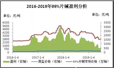 圖1 2017-2019年國內99%片堿市場均價走勢對比圖