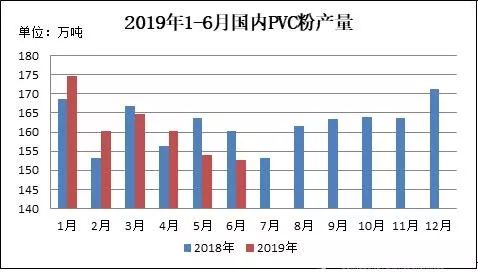 圖3 2019年1-6月國內(nèi)PVC粉產(chǎn)量