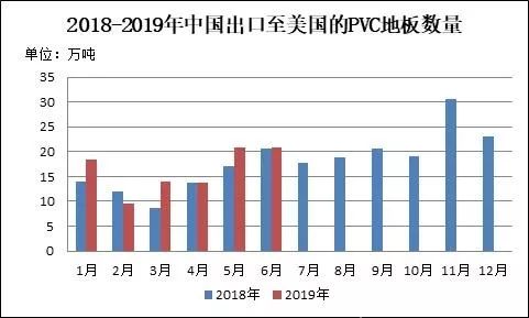 圖10 2018-2019年中國出口至美國的PVC地板數(shù)量