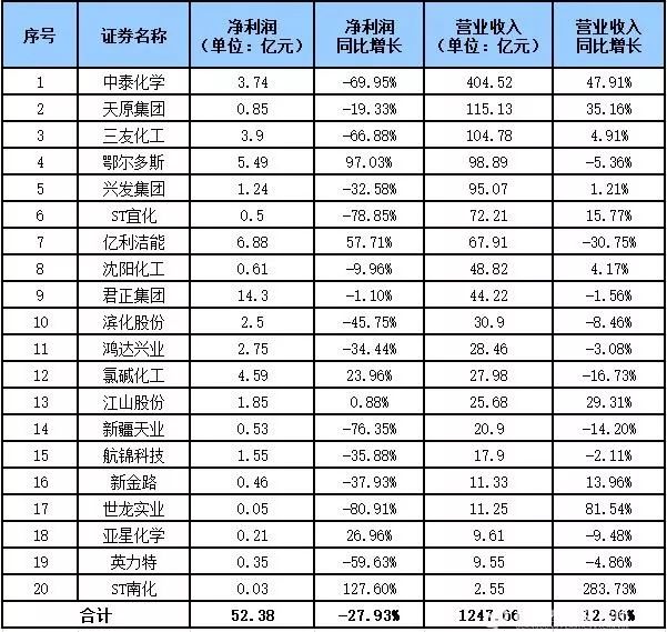 上市公司2019年度的半年報已披露完畢。廣東塑料交易所統(tǒng)計了新疆天業(yè)、中泰化學(xué)、英力特、鴻達興業(yè)等20家氯堿行業(yè)上市公司上半年的業(yè)績情況,合計實現(xiàn)營收1247.66億元,同比增長12.96%,凈利潤52.38億元,同比下降27.93%;雖然利潤出現(xiàn)下滑,但上半年這20家上市公司全部實現(xiàn)盈利。