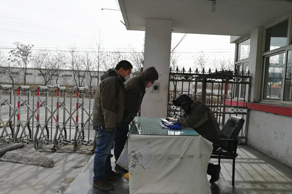 2月13日,氣溫驟降,在片區(qū)北大門新增檢測點,由于值班室是移動房,沒有暖氣,劉聰俊和侯進(jìn)在晚上頂著寒冷值班。盡管天氣嚴(yán)寒,但他們依然堅守崗位,一絲不茍地對通行人員進(jìn)行體溫測量和信息登記,嚴(yán)把疫情防控關(guān)。和他們一樣,所有檢測點的保衛(wèi)科人員都默默無聞地與疫情防控和嚴(yán)寒做著斗爭。