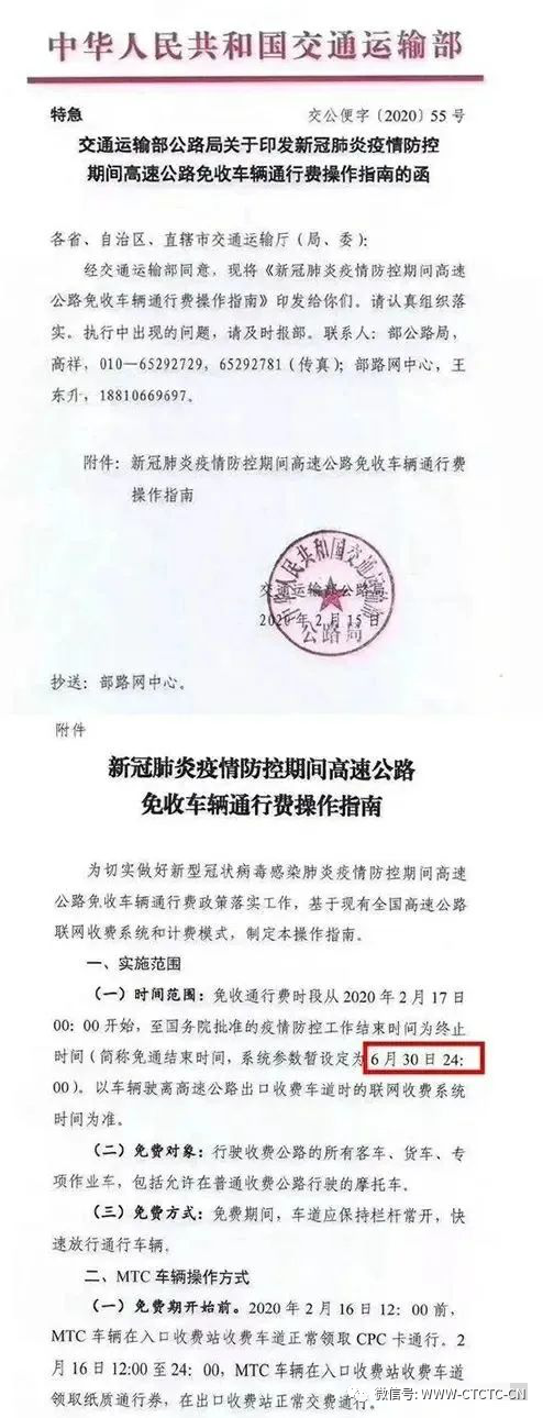 交通部門,根據(jù)疫情防控需要,經(jīng)國務院同意,從2月17日0時起至疫情防控工作結(jié)束,所有依法通行收費公路的車輛免收通行費。