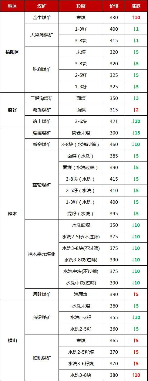 今日調(diào)整價(jià)格的煤礦有: