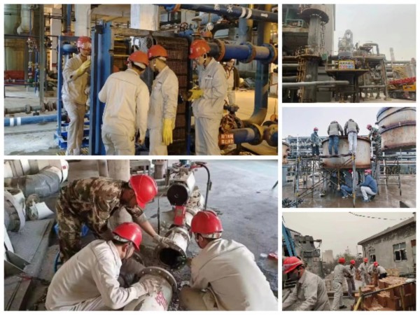 大家爭分奪秒,檢修現場一派繁忙。夜幕降臨,廠區(qū)內燈火輝煌,到處綻放著電焊的弧光;星光閃爍,檢修人員揮汗如雨,火熱的青春激情飛揚。這個春天,金昱元人譜寫了一曲壯麗的樂章。