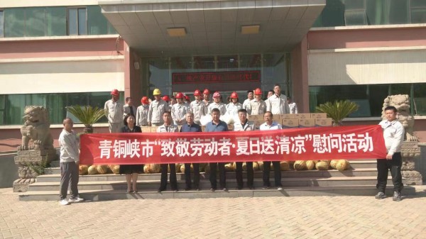 青銅峽市總工會(huì)和固原經(jīng)濟(jì)開發(fā)區(qū)總工會(huì)為集團(tuán)公司送來(lái)西瓜、礦泉水、金絲菊、冰糖等防暑物品,表達(dá)對(duì)企業(yè)一線員工關(guān)心和厚愛(ài)。