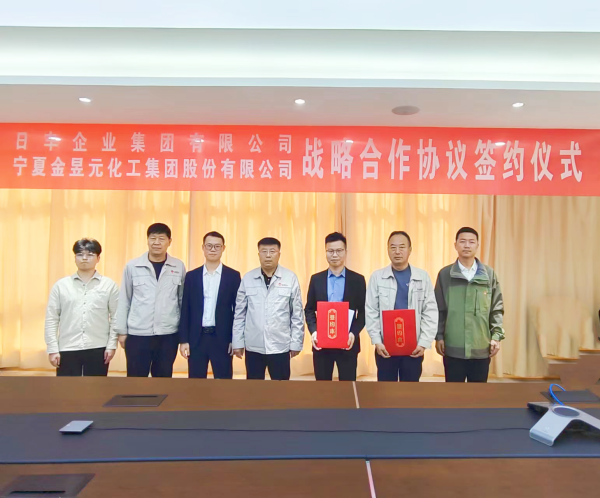 3月28日,寧夏金昱元化工集團(tuán)股份有限公司和日豐企業(yè)集團(tuán)有限公司舉行《戰(zhàn)略合作框架協(xié)議》簽約儀式。寧夏金昱元化工集團(tuán)股份有限公司總裁喬冠榮,總會(huì)計(jì)師喬建明,銷售公司總經(jīng)理胡斌德、華南區(qū)總經(jīng)理張志明等領(lǐng)導(dǎo)與日豐企業(yè)集團(tuán)有限公司采購中心大宗采購部總監(jiān)李傲、大宗采購部主管吳偉深、大宗采購部專員蘇李生參加簽約儀式。