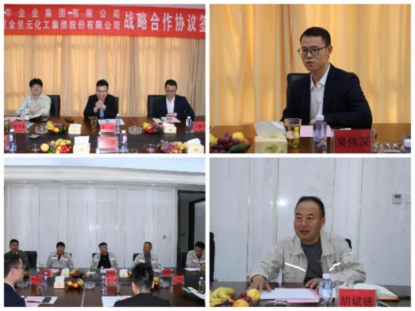 寧夏金昱元化工集團(tuán)股份有限公司銷售公司總經(jīng)理胡斌德、日豐企業(yè)集團(tuán)有限公司采購中心大宗采購部總監(jiān)李傲代表雙方企業(yè)簽訂《戰(zhàn)略合作框架協(xié)議》。