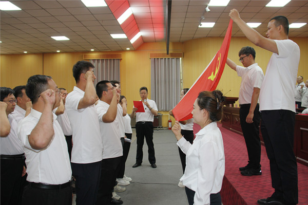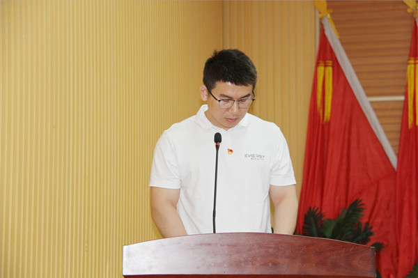 新黨員代表李愛軍作表態(tài)發(fā)言。他號召廣大黨員不忘初心,勇挑重?fù)?dān)、銳意進(jìn)取,時刻為企業(yè)發(fā)展和國家建設(shè)貢獻(xiàn)智慧與力量。