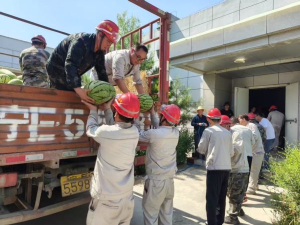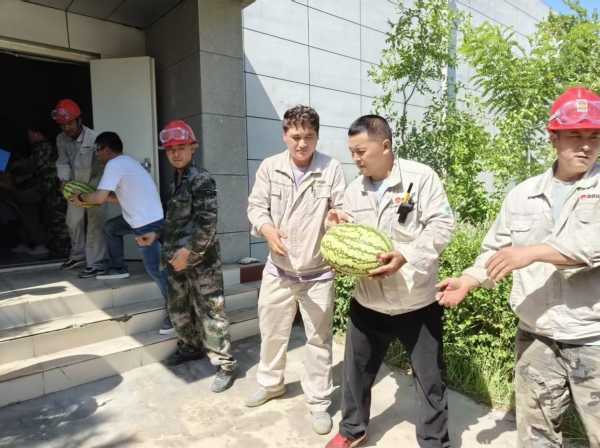 活動(dòng)期間,固原基地工會(huì)深入現(xiàn)場(chǎng),將防暑西瓜分發(fā)到職工手中,為身處高溫工作環(huán)境的職工送去陣陣清涼。同時(shí)對(duì)奮戰(zhàn)在一線(xiàn)的職工致以親切問(wèn)候,并囑咐大家做好高溫防護(hù),鼓勵(lì)大家在繁忙的工作中積極發(fā)揮勞模精神、工匠精神,為高溫季節(jié)安全生產(chǎn)保駕護(hù)航。