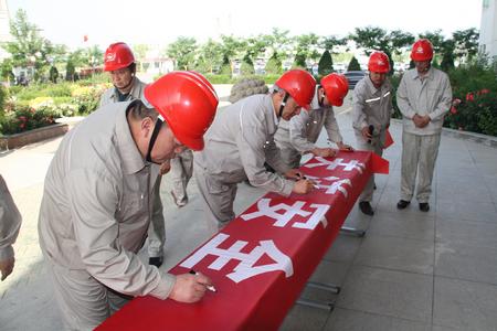 在安全宣誓儀式上,員工們著裝整齊劃一,頭戴安全帽,聲音鏗鏘有力,展現(xiàn)了公司員工“增強(qiáng)安全紅線意識,嚴(yán)格落實(shí)安全生產(chǎn)責(zé)任,強(qiáng)化監(jiān)督和防范措施”的信心和決心。公司董事長代良云率先垂范,帶領(lǐng)干部職工在主題旗上鄭重簽名,體現(xiàn)了干部職工對本職工作的安全承諾,安全有我,有我安全,做“安全合格員工”。